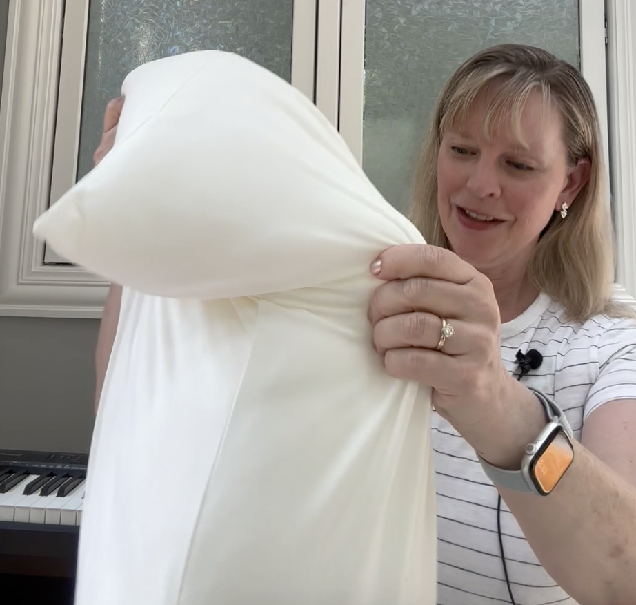 I was the first to test it out for a night, but I quickly discovered it wasn’t quite right for me. I’m used to a contoured memory foam pillow that supports my neck in a very specific way, and the Marshmalloo’s fluffy design just didn’t give me the same support. (If you use a “molded” or orthopedic-style pillow, you probably know what I mean!)